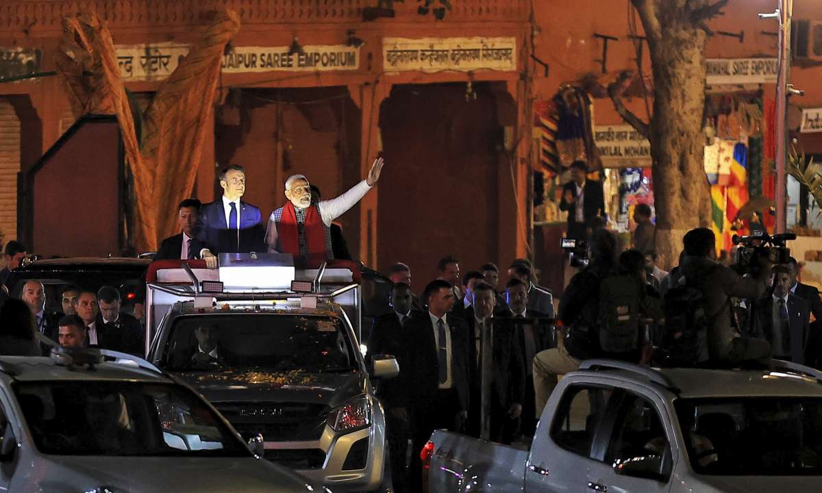Image Source : PTI पीएम मोदी, फ्रांस के राष्ट्रपति मैक्रों Macron Jaipur Visit: फ्रांस के राष्ट्रपति इमानुएल मैक्रों 26जनवरी गणतंत्र दिवस के अवसर पर भारत के मेहमान हैं। उन्होंने आज जयपुर में प्रधानमंत्री नरेंद्र मोदी के साथ जयपुर में रैली और रोड शो में हिस्सा लिया। इस दौरान मैक्रों और पीएम मोदी के रूप में दोनों देशों की दोस्ती साफ झलक रही थी। फ्रांस से आए मेहमान मैक्रों को पीएम मोदी ने यादगार भेंट दी। यह भेंट थी अयोध्या के भव्य राम मंदिर की प्रतिकृति। इस गिफ्ट को पाकर मैक्रों काफी खुश हुए। जानकारी के अनुसार प्रधानमंत्री नरेन्द्र मोदी ने बृहस्पतिवार को गणतंत्र दिवस समारोह में मुख्य अतिथि के रूप में शामिल होने के लिए भारत पहुंचे फ्रांस के राष्ट्रपति इमैनुएल मैक्रों को उपहार में अयोध्या के राम मंदिर की प्रतिकृति दी। प्रधानमंत्री